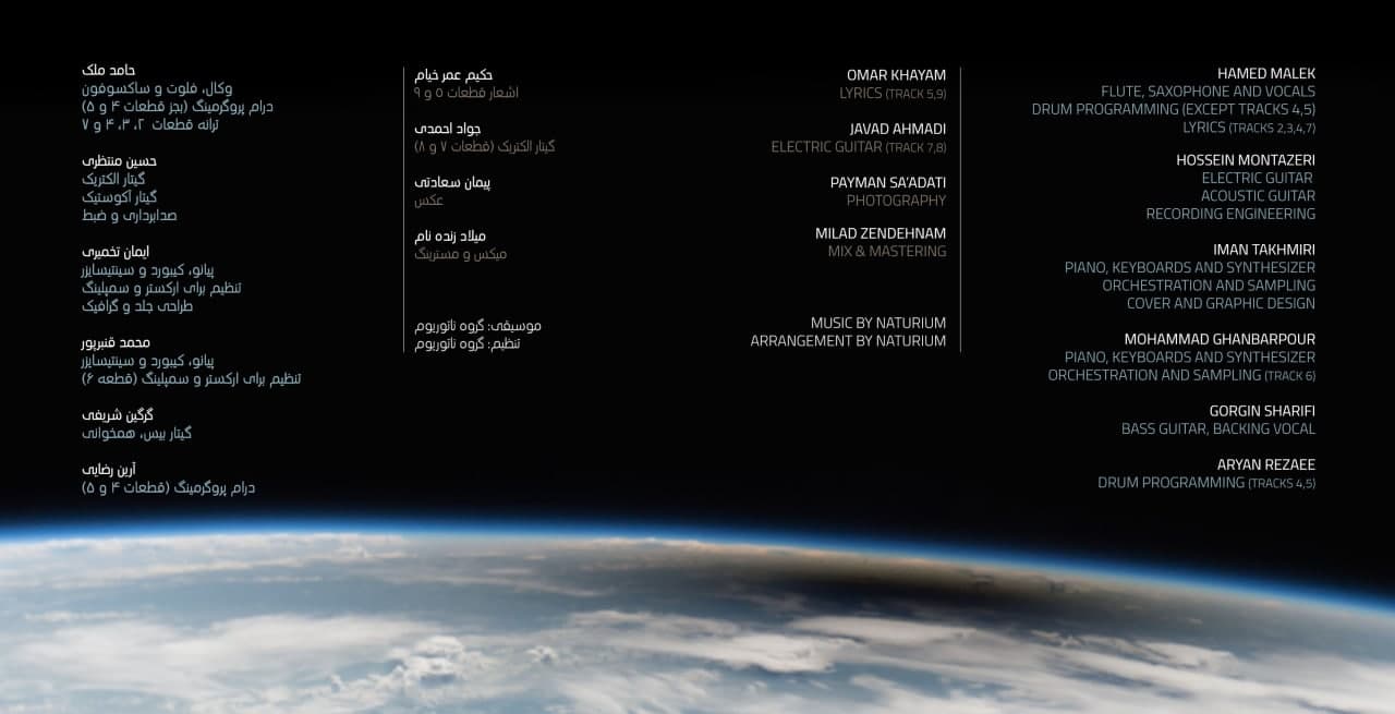 شامل ۹ عدد قطعه موسیقی می باشد. که ترانه های آن توسط حامد ملک و خیام نیشابوری سروده شده است.
