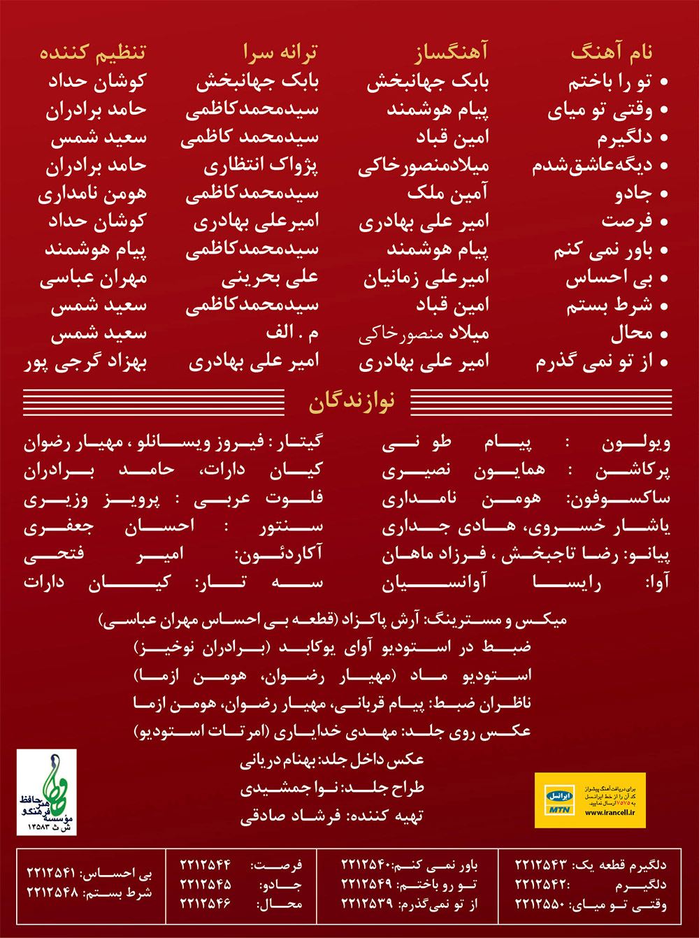 روی جلد: مهدی خدایاری (امرتات استودیو) / داخل جلد: بهنام دریانی