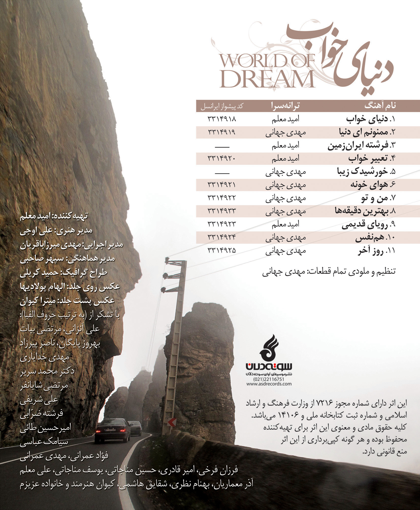 موسیقی ما – امید شایان: آلبوم «دنیای خواب» با صدای «مهدی جهانی» از سوی موسسه «آوای سوته دلان» و تهیه کنندگی «امید معلم» وارد بازار موسیقی کشور شد.