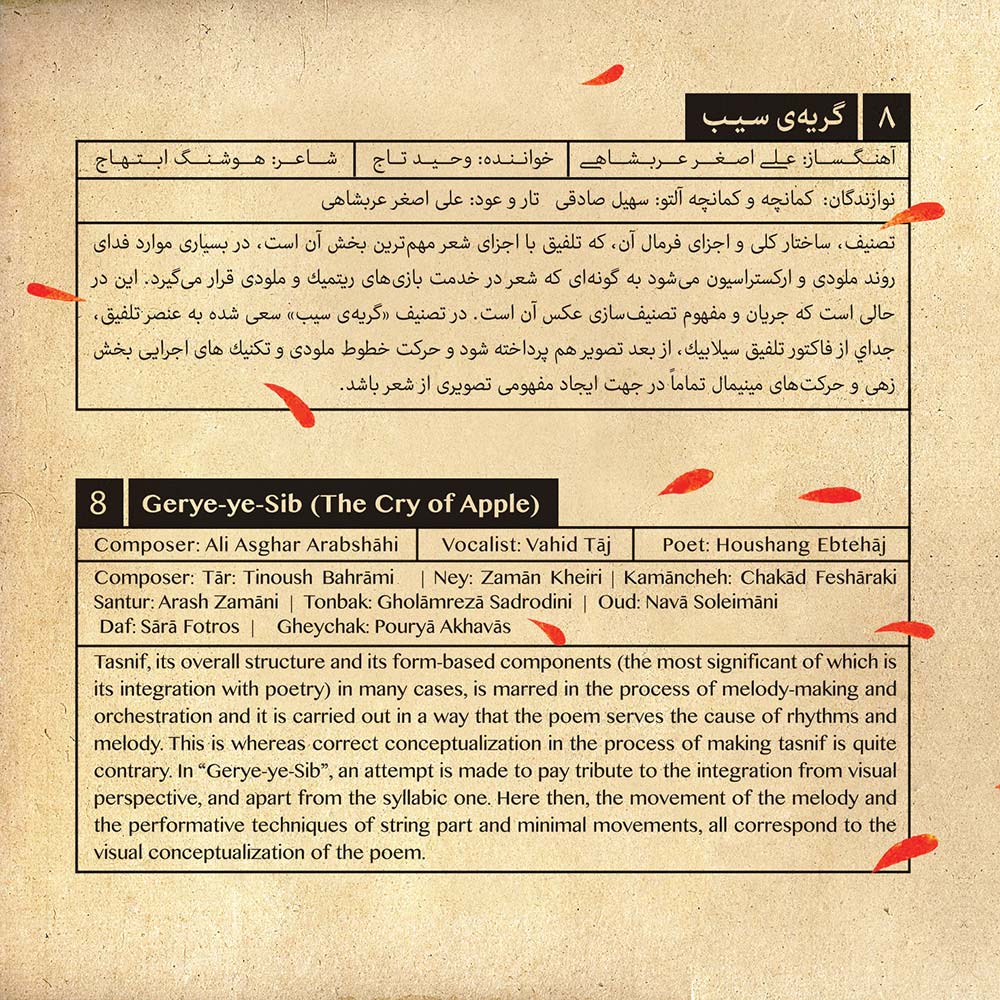 هوشنگ ابتهاج (ه.ا.سایه)، مولانا، محمدرضا شفیعی کدکنی، مانی جعفر زاده، محمد سلمانی، محمدمهدی رستمی شاهرودی، سعدی