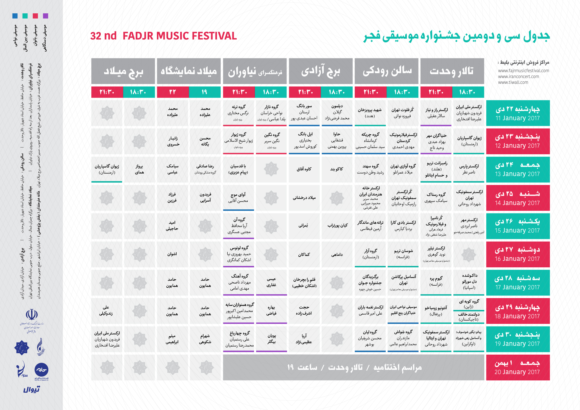 برنامه کامل اجراهای سی و دومین جشنواره موسیقی فجر