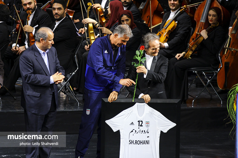 روحانی در ادامه صحبتهایش اضافه کرد که همه اعضای ارکسترهای ایرانی علاقه ویژهای را به سرمربی تیم ملی فوتبال ایران دارند و این اجرا برای قدردانی از زحمات سرمربی تیم ملی فوتبال ایران به او تقدیم میشود.