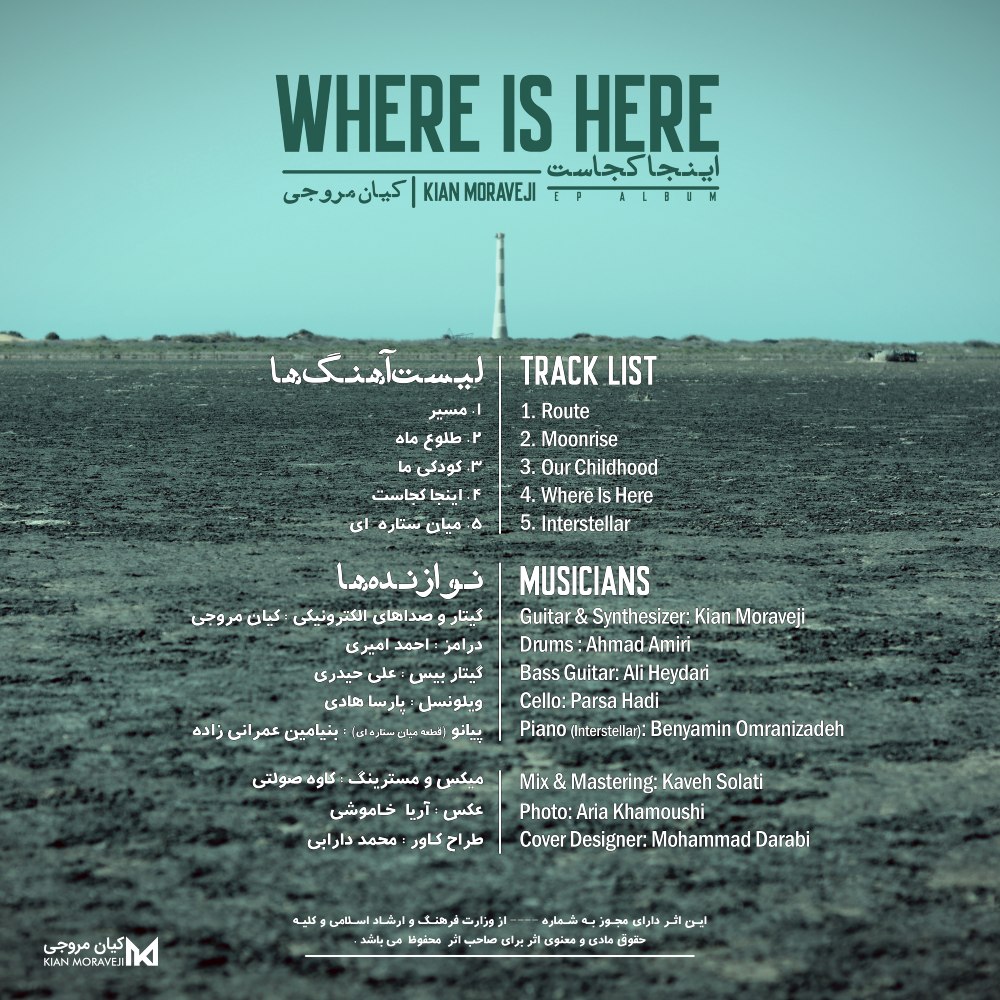 آلبوم «اینجا کجاست» اثری است از کیان مروجی. این مجموعه شامل پنج آهنگ بیکلام در سبک موسیقی راک است. «مسیر»، «طلوع ماه»، «کودکی ما»، «اینجا کجاست» و «میانستارهای» قطعات این آلبوم را تشکیل میدهند. از نوازندگان این اثر میتوان به کیان مروجی (گیتار و صداهای الکترونیکی)، احمد امیری (درامز)، علی حیدری (گیتار بیس)، پارسا هادی (ویولنسل) و بنیامین عمرانیزاده (پیانو) اشاره کرد.